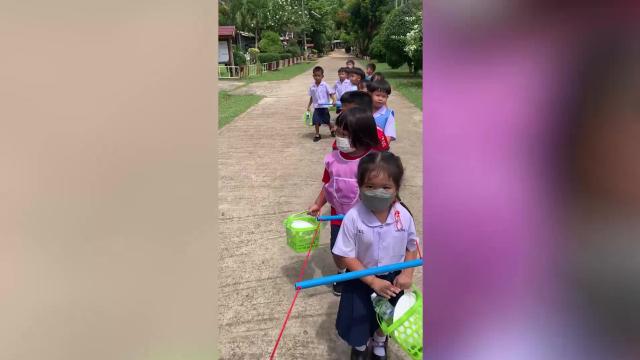 Teacher Jutarat Tongmu had the idea after noticing how difficult it was to keep an eye on the whole kindergarten class during lunch in Phetchabun province, Thailand on May 24. 2022-07-30 17:26:42