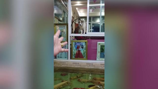 The terrified Thai Bangkaew named Maruay was filmed helplessly standing on a windowsill as its owner called out to it in Ratchaburi province, Thailand, on June 20. 2022-07-30 14:22:58