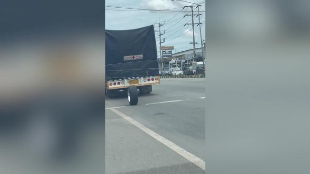 The detached rubber tyre was filmed by motorist Chatchawan Khondee bouncing and rolling between trucks on a road in Chachoengsao province on July 4. 2022-07-30 14:19:20