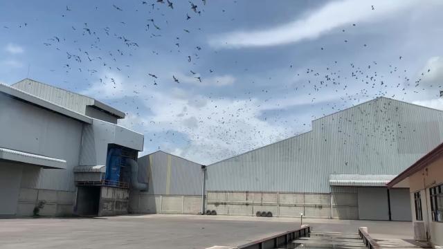 Footage shows the man lighting the explosive before throwing it towards the avians perched on top of buildings in Sing Buri province, Thailand on June 26. 2022-07-30 17:22:57