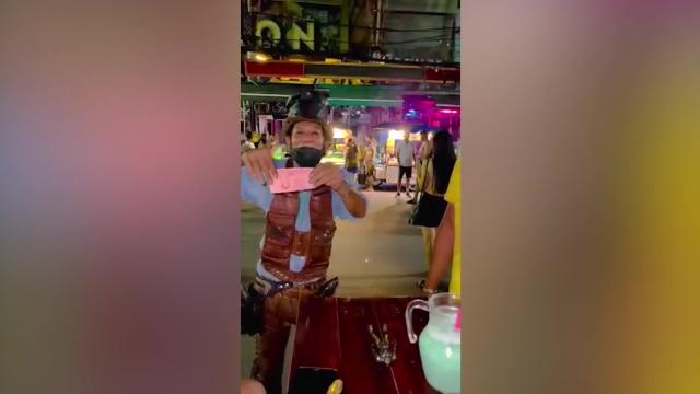 The cowboy-costumed illusionist invited tourists to his stall in Phuket on May 22, and displayed his impressive sleight of hand, aided by his 'magic toys.' 2022-07-30 14:16:32