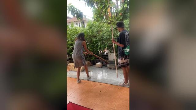 Jum Chungchung was watering her plants when she noticed the wild reptile rustling among the leaves in Surat Thani province, Thailand on July 26. 2022-07-28 19:33:40