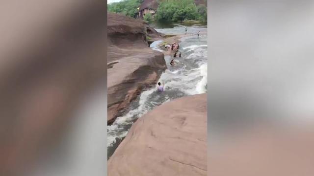 Video shows reveler Jirathiwat Boonbanlu letting himself be swept away by fast-flowing currents at the Tham Phra waterfall in Bueng Kan province, northeastern Thailand, on June 7. 2022-07-28 18:58:47