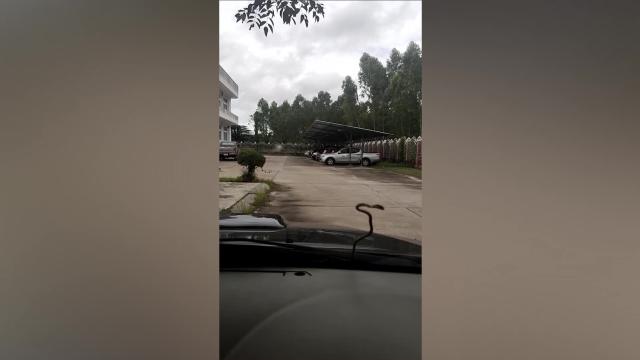 Footage shows the 2ft-long creature crawling on the glass as the driver and her passenger were inside the sedan in Chonburi province, Thailand on July 22. 2022-07-28 19:20:46