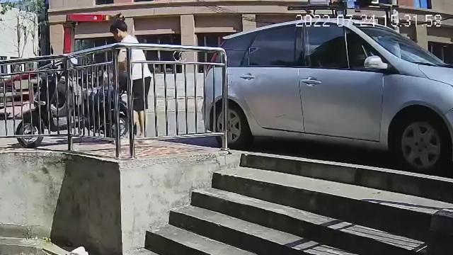 CCTV footage shows the curious toddler lifting up the planks that served as a manhole cover before plunging feet-first through the opening in Fuyang City in China's Anhui province on July 18. 2022-07-28 19:29:53
