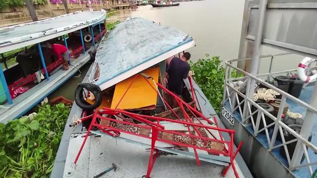 The vessel carrying a heavy cargo of coal was pushed by tides towards a pier in Pathum Thani province when it collided with the passenger ship on July 23. 2022-07-26 18:52:19