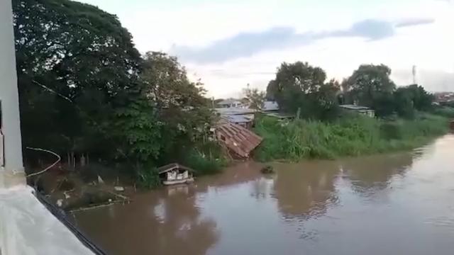 The home's foundation slid into the Nan River in Phichit province's Bang Mun Nak municipality on July 24 evening, sending the wooden structure crumbling to the ground after being lashed by storms. 2022-07-26 17:35:31