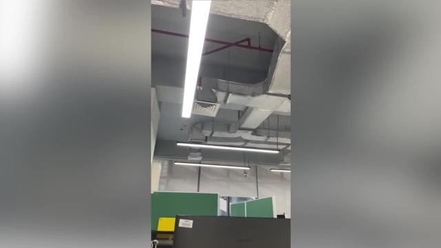 Footage shows the light fixtures swinging over employees working in their office in Bonifacio Global City in the National Capital Region on July 27. 2022-07-27 13:43:18