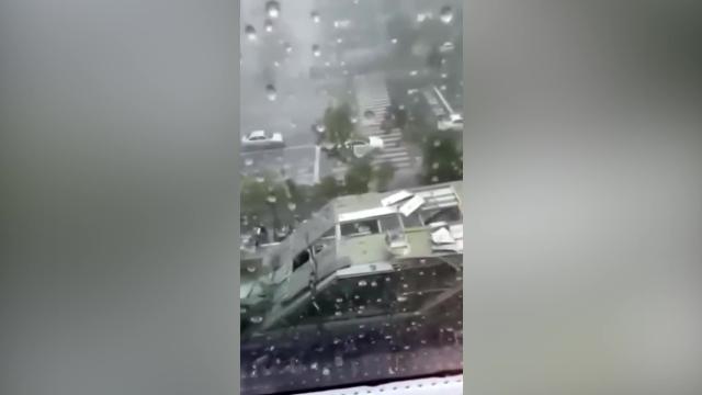 Footage shows the leaky structure falling as a security guard assisted shoppers to enter the building in Pasay City, Manila, on July 18. 2022-07-20 21:46:20