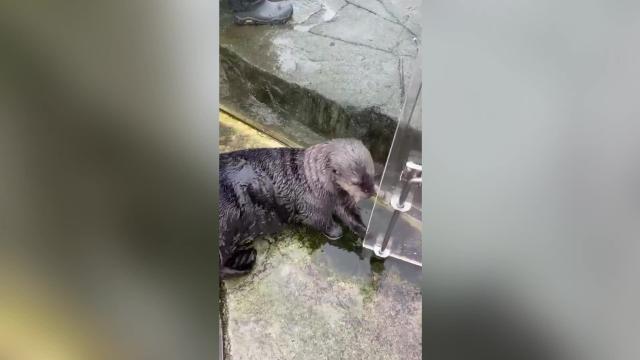 Hardy can be seen in this footage sliding out of a swimming pool filled with other otters and using his nose to close the door behind him. 2022-07-20 18:15:38