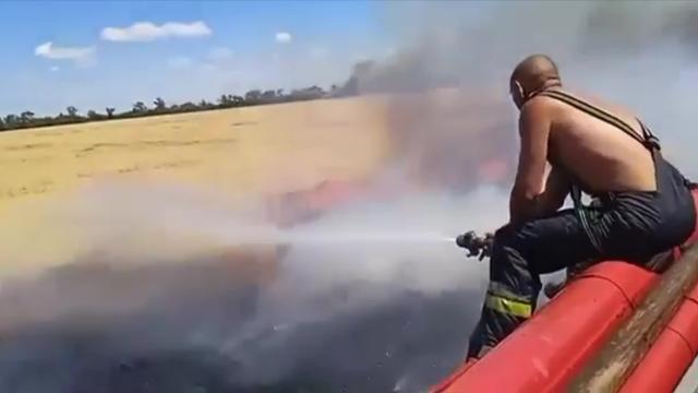 The footage shows how a big dark patch can be seen burning in an otherwise beautiful field of what appears to be wheat, reportedly in the Mykolaiv region, in south-western Ukraine. 2022-07-20 20:30:28