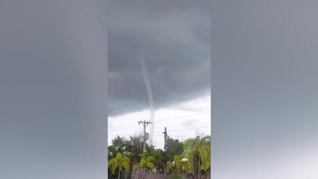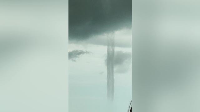 Footage shows the air column writhing above the waters near the Lingayen Baywalk in Pangasinan province on July 16. The currents can be seen visibly circulating inside the well-defined funnel that connected to a blanket of dark clouds in the sky.