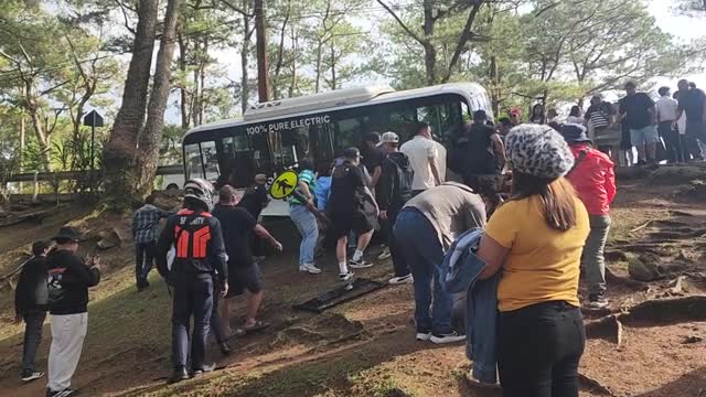 A family was celebrating an upcoming wedding when the electric bus, carrying seven passengers, ascending a section of Scott Hill, reportedly swerved off the road, hitting five holidaymakers in Baguio, the Philippines.
