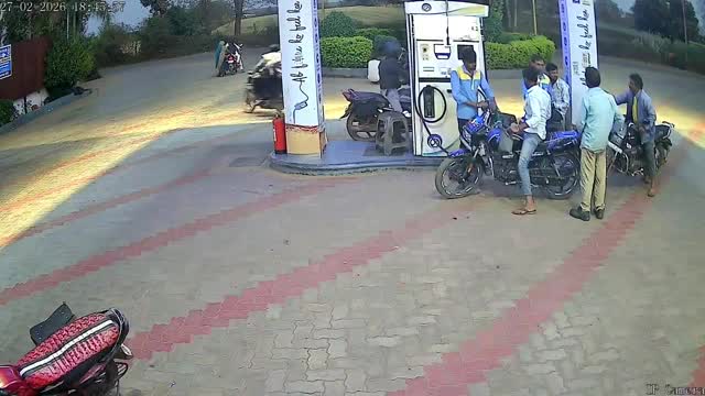 CCTV footage shows the man, wearing a black helmet, refuelling his two-wheeler while using his phone when the tank suddenly ignited at the Tirupati Filling Station in Madhya Pradesh, India. 2026-03-06 11:55:08