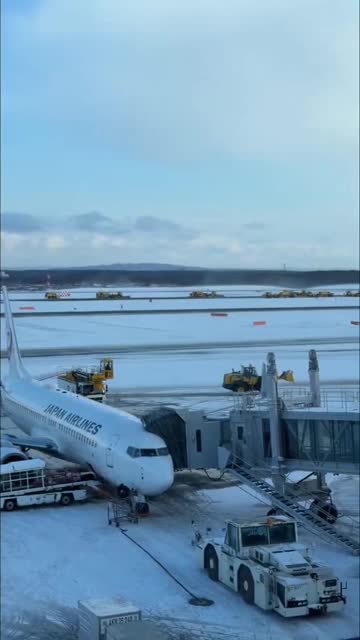 Footage shows a convoy of snow-clearing machines sweeping fresh powder at New Chitose Airport in Hokkaido, as thick snowfall disrupted flights across the region. 2026-01-12 14:28:36