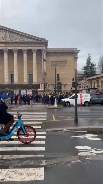 Footage shows a crowd of demonstrators standing along a rain-soaked street near the Pantheon on January 8, as police vans watched nearby. 2026-01-12 14:28:18