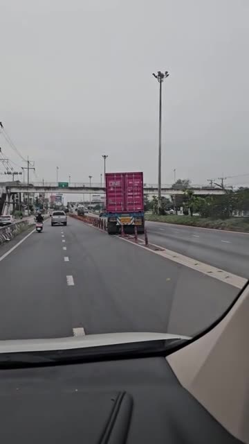 James Ayuttakarn and his friends saw the container lorry move on a different section of the road by manoeuvring through the barricades in Saraburi, Thailand. 2025-11-17 14:15:34