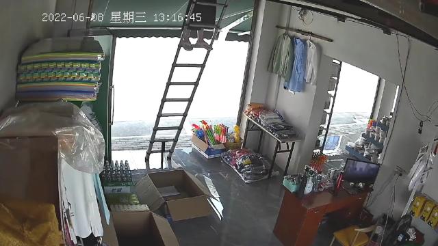 The lady was climbing the steps while storing a box away on a high shelf in her house in Shangrao City, Jiangxi province on June 8. 2022-06-14 16:59:56