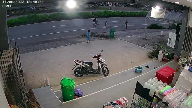 The three-year-old girl was riding her push bike towards her little brother when he chased after her in Krabi, southern Thailand, on June 11. 2022-06-14 16:50:05
