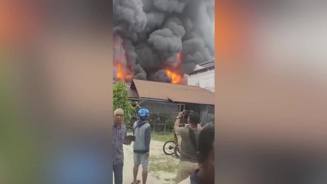 The man, known in his community as Uncle Ongket, was seen fruitlessly dousing the inferno with a low-pressure stream of water as the flames ripped through the building in East Kotawaringin Regency in Central Kalimantan Province on June 12. 2022-06-14 14:34:14