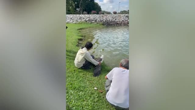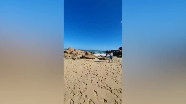 Footage shows the holidaymakets taking pictures at the Injidup natural spa on June 20 last year. A huge swell of water can be seen in the distance, moments before the large wave crashed into the shore.