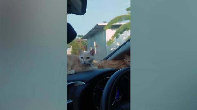 Video shows the moggies draped across the dashboard as their owner sped along a road in Bangkok on April 25. Despite the occasional road bump, the pet cats had no problem falling asleep in the moving vehicle.