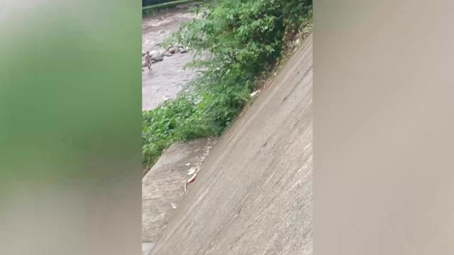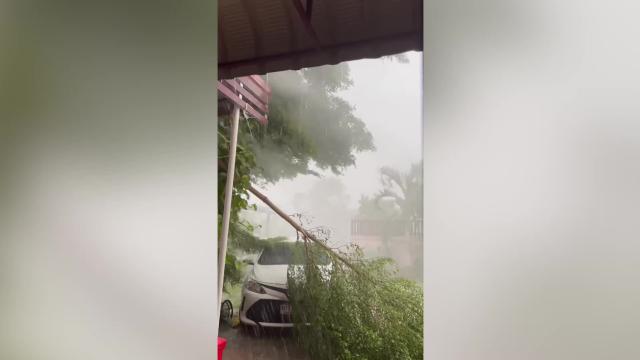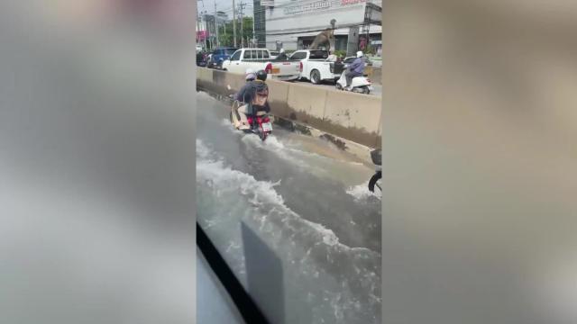 Footage taken in Lampang province on May 17 shows the two-storey house standing on unstable wooden columns which began snapping as they tilted due to the strong currents. Homeowner Somthat Kankaew filmed the moment the damaged supports gave way, causing her house to be flattened within seconds.