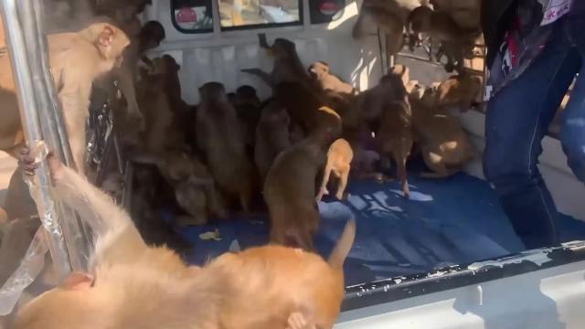 Footage taken in the Tianehu Animal Base in Hainan province on May 14 shows the giant rodents - some as large as a small goat -gathering around a woman as she chopped up some food for them.