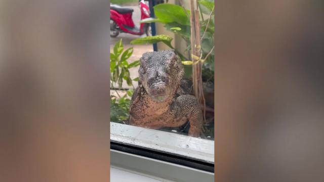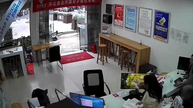 The beast caused a fright when it ran into the store in Huanggang City, Hubei province on May 11, shocking the staff inside. Spooked by the chaos, it charged at the employees, who then drove it back outside using a plastic chair.