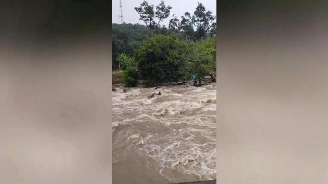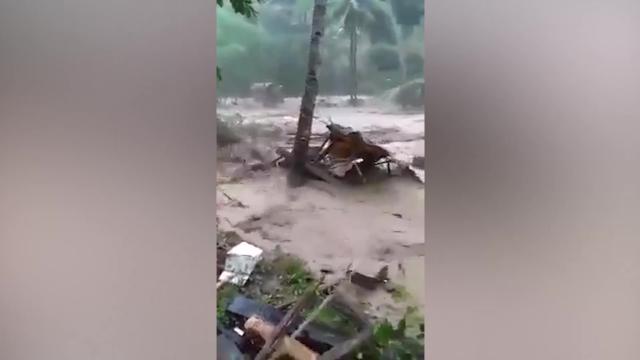 Flash flood wrecks wooden houses in the Philippines