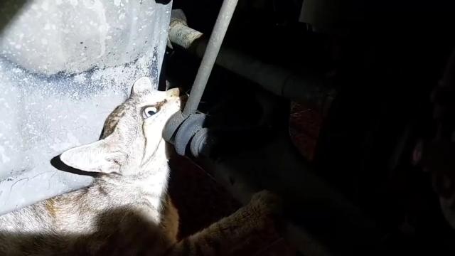 The three-year-old stray was believed to have hidden inside the car when a dog chased her away but her bulging stomach was caught on her way out in Chon Buri province, Thailand on June 6. 2022-07-12 15:33:48