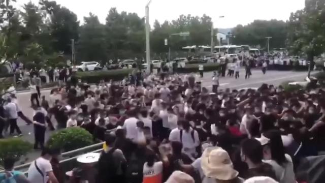 Footage shows thousands of locals gathering outside the People's Bank of China, a central bank of the PRC, in in Hangzhou city, shortly after sunrise. 2022-07-11 20:05:35