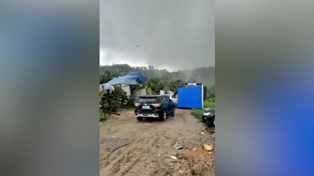 Cheeky wild monkey eats snack on moving car's bonnet