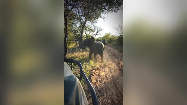 Hungry elephant grabs fruit basket from tourist's hand