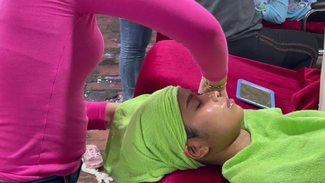 Hair cuts, manicures and face packs were all being sold among the cramped covered stalls in the capital Phnom Penh on Saturday June 25.