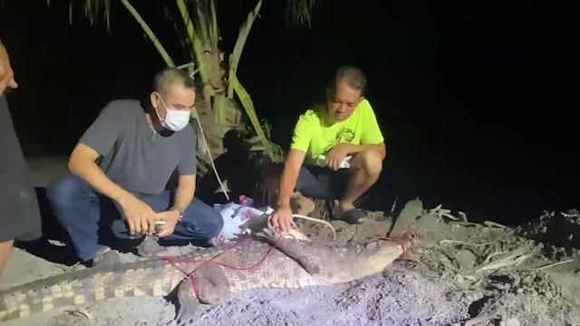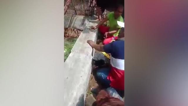 Greedy snake bites off more than it can chew while trying to swallow calf