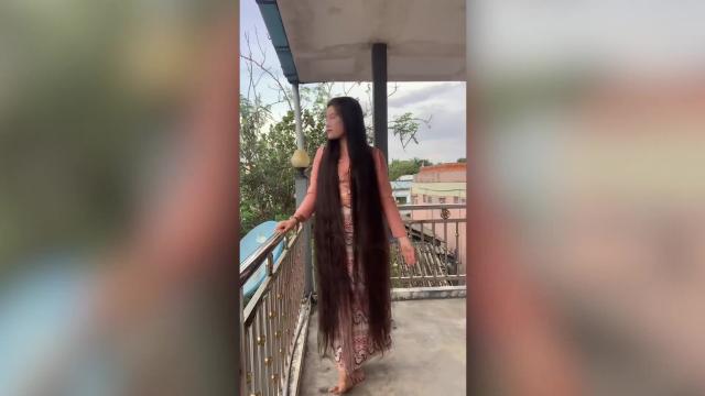 Real-life 'Rapunzel' swings her hair from balcony in Myanmar