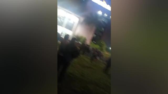 In the video, a man was seen walking towards a parcel which seemed to be put inside black plastic bag and then put in the middle of the street. He was trying to poke it with a stick to see what's inside. Another two people were also coming to that place. As soon as those two people arrived, the bomb exploded and the first man who approached got injured severely and one of the two people coming later seemed to be injured as well but not major like the first one.