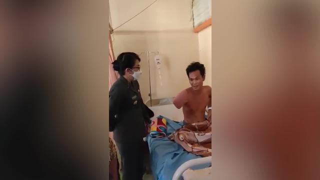 Ilham, 49, had dropped off local tourists when he suffered a flat tire and dirtied his hands changing the wheel at the Sinka Zoo in West Kalimantan Province, Indonesia, on June 9. 2022-06-10 21:56:47
