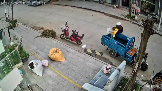 An elderly man had placed his one-year-old grandson on the back of the vehicle by the roadside when the young boy leaned against the barrier and fell to the ground in Jiangsu Province, China. 2025-11-10 13:41:50