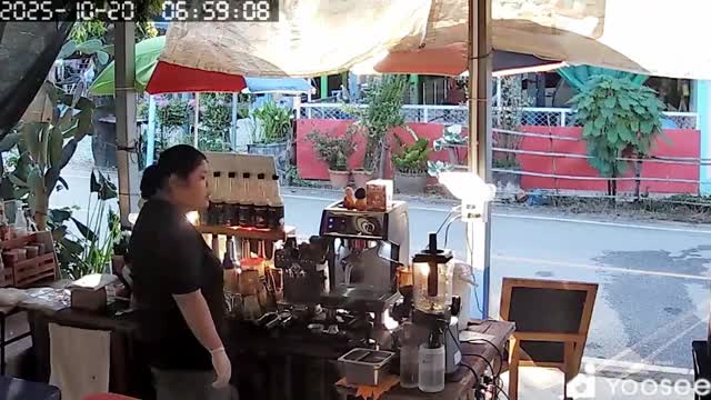 Horrified shoppers noticed the reptile coiled along the black frame of a coffee stall at the Future Park Rangsit mall in Pathum Thani, Thailand. 2025-11-10 13:21:27
