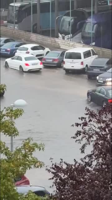 Footage shows cars carefully navigating through waterlogged streets near a shopping centre and bus station in Caceres on November 5. 2025-11-07 13:48:22