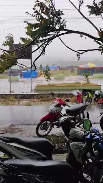 Footage captured by Afifudin shows heavy rain and strong winds battering a field during a local celebration in Sale District, Rembang Regency. 2025-11-07 13:34:47