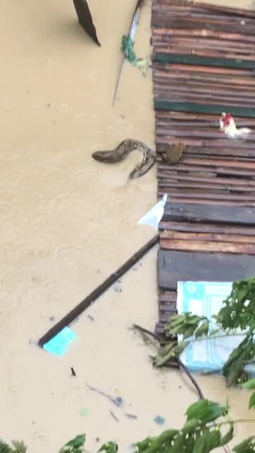 Residents were left stunned when they spotted the 20ft (6m) reticulated python slithering across a floating bamboo raft amid heavy rain in Talisay City, Cebu. 2025-11-07 14:17:35