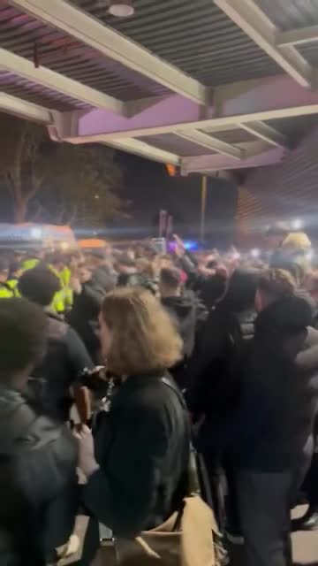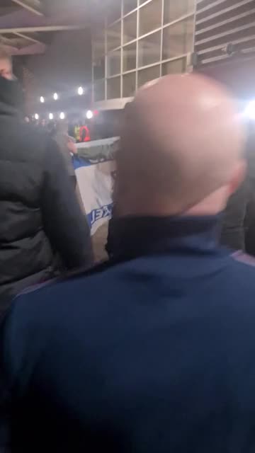 Footage shows a police officer appearing to take the blue-and-white banner from a supporter wearing a jacket who had proudly displayed it before the incident. 2025-11-07 16:06:06