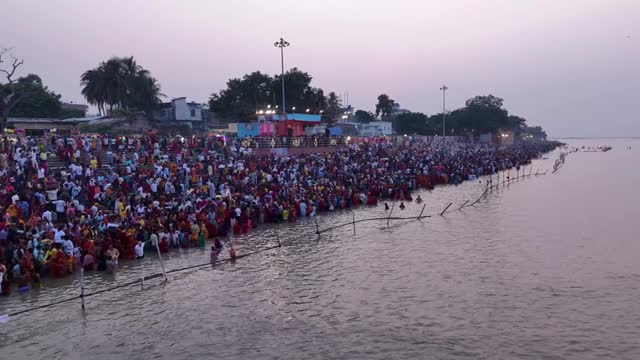 Thousands of worshippers converged on Bhagalpur, Bihar, on October 27 to make offerings as part of the traditional Chhath Puja celebration. 2025-10-29 17:15:53