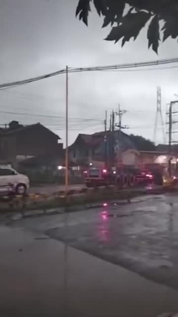The unloaded trailer lorry became stranded on the railway tracks when the crossing gates closed in Semarang City, Central Java Province, on Tuesday. 2025-10-22 15:52:33