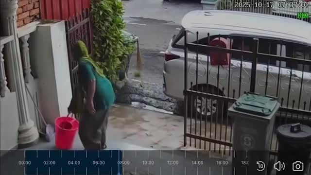 The residents met on the street, with one of them clearing fallen leaves from a bush between their houses in Johor, Malaysia, on October 17. 2025-10-22 16:30:41