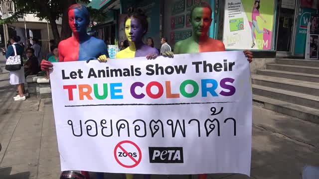 Three woman from the group People for the Ethical Treatment of Animals (PETA) wore only their underwear and brightly coloured paint outside the Pata Zoo, which sits on the roof of a grotty shopping mall in Bangkok. 2025-10-19 10:00:31