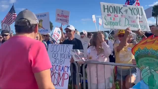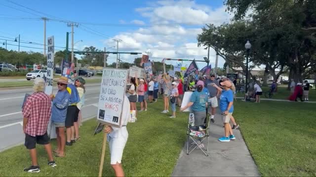 Footage shows dozens of protesters gathered along a roadside in Sebastian on Saturday, October 18, with some carrying signs that read, 'No Dictators'. 2025-10-20 12:03:52